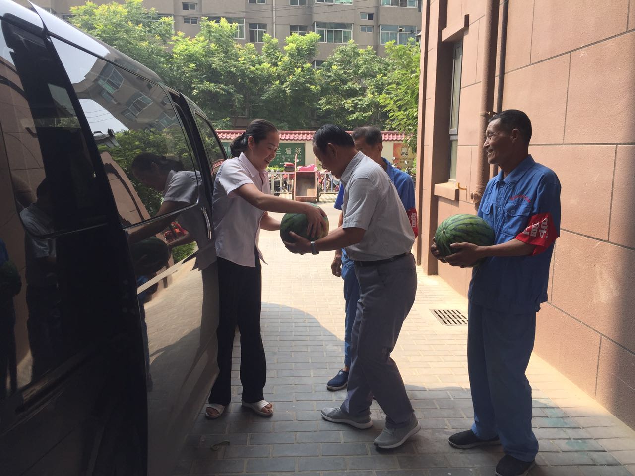 當日上午,總經(jīng)理趙明海、工會主席常紅艷等人一行來到河南街、安谷苑、九冶、城投時代進行慰問,向一線職工送去800余斤西瓜。慰問組每到一處,親切詢問保安保潔的生活情況和工作狀況,叮囑他們要注意防暑降溫,并對保安保潔近期以來的勤懇勞動表示感激和關懷之情,叮囑他們在開展“創(chuàng)文”整治工作以來,保潔員隊伍人員少、天氣熱、任務重的情況下,在提高小區(qū)環(huán)境質(zhì)量的同時,要做好遮陽等保護措施,注意勞逸結(jié)合,預防中暑。