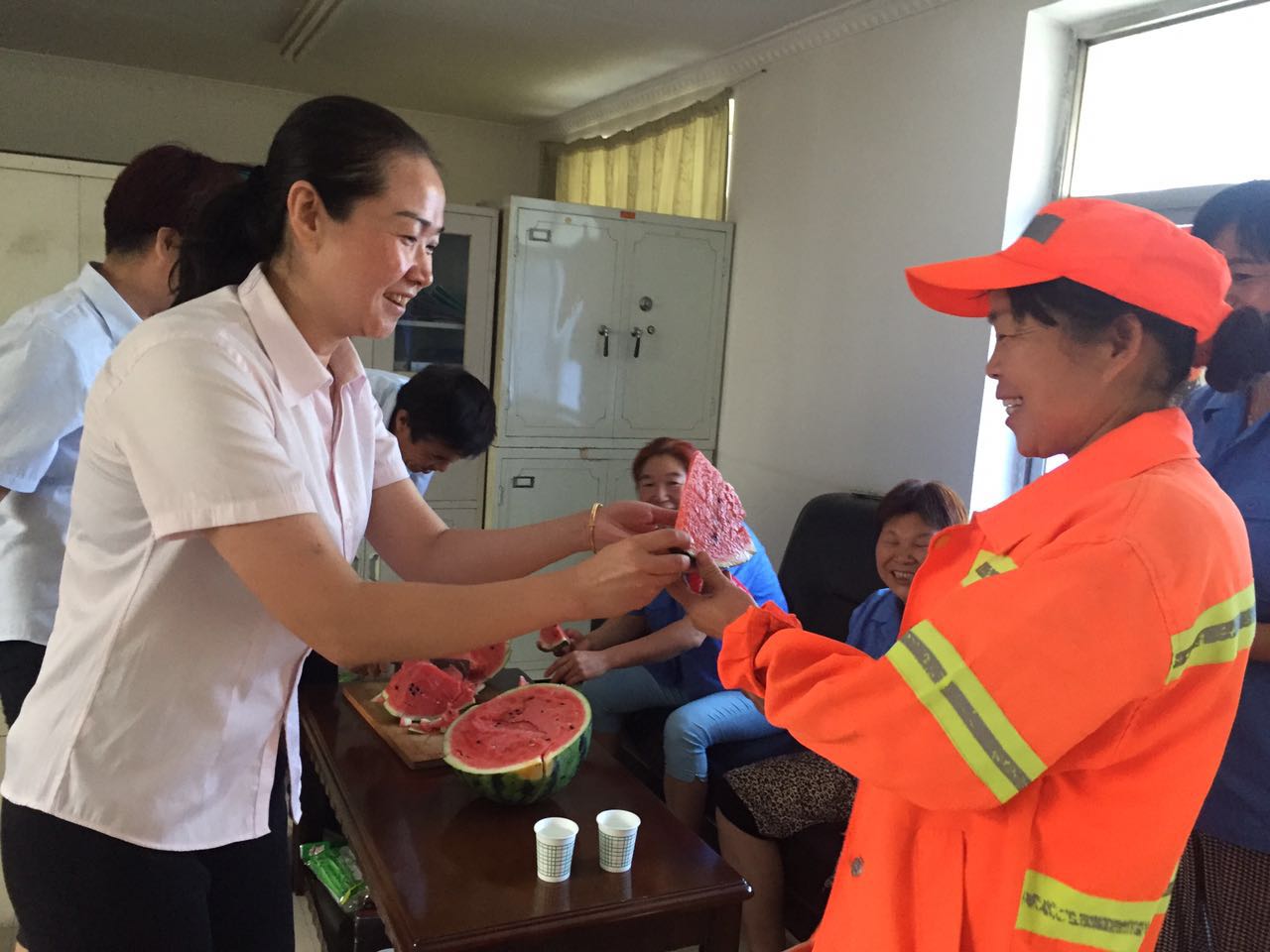 此次慰問活動,不僅給清潔工們帶去了一絲涼意,感受到公司領導對他們的關懷,更振奮了他們的精神。