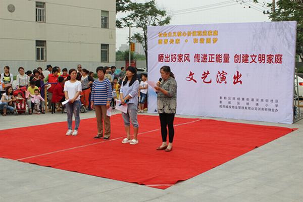 此次匯演,是推進社會主義核心價值觀“六進”活動的重要載體。從三月初,通過從河南街小區(qū)業(yè)主中,征集好家規(guī)好家訓(xùn)和編寫最美家庭故事的方式,最終甄選確定10戶業(yè)主,在匯演現(xiàn)場分享家法家規(guī),展示家庭“正能量”。在分享的間隙,由舞蹈、歌曲、戲曲等業(yè)主們喜聞樂見的文藝表演穿插其中,使小區(qū)業(yè)主在潛移默化中受到熏陶,增強認(rèn)可。