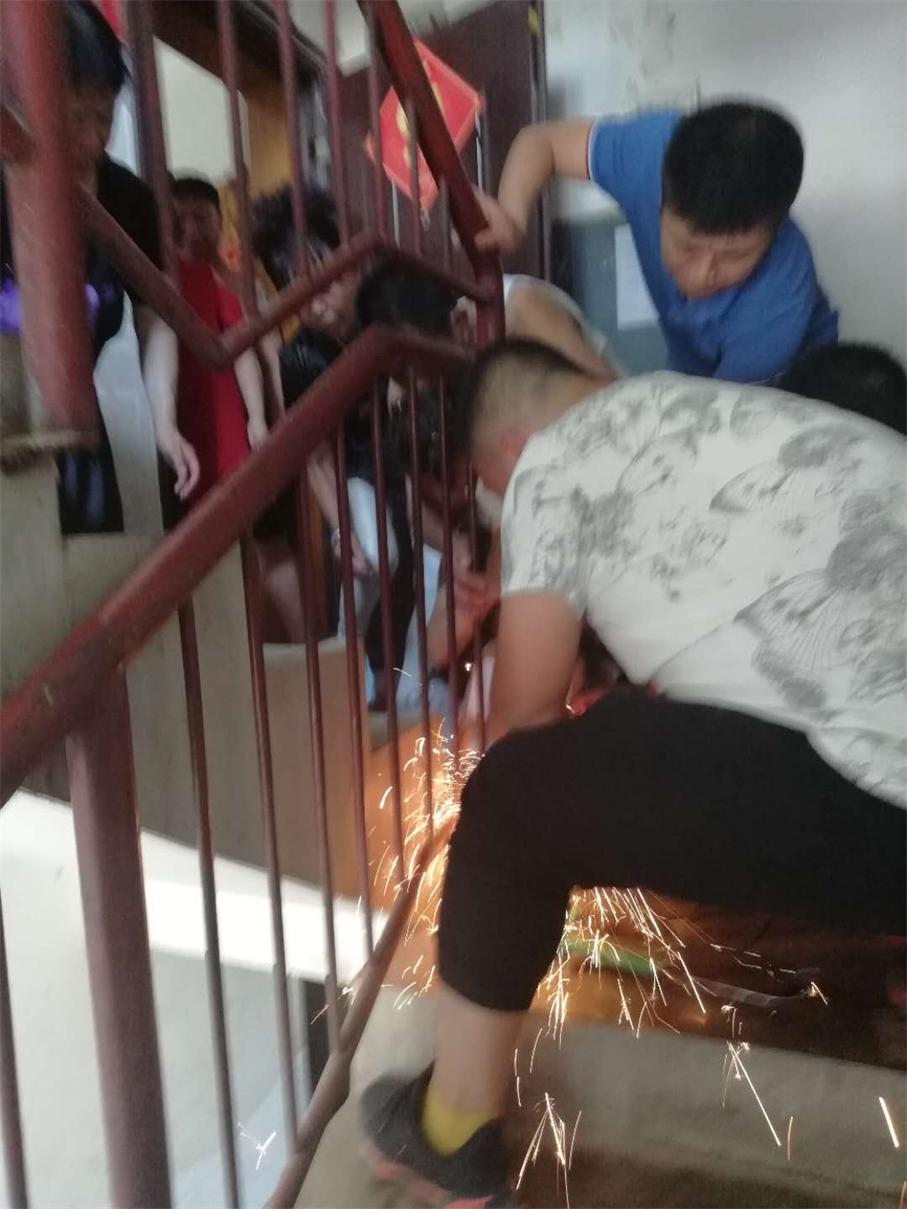 為避免孩子再次受到傷害,維修人員事先對小男孩的頭部做了適當(dāng)?shù)谋Wo(hù),隨后,用切割機(jī)將護(hù)欄切割開,隨著“咔嚓”兩聲輕響,一分鐘不到,欄桿鋼條兩端被割斷。5點(diǎn)25分,小女孩毫發(fā)未損,安全脫身。所有的人那顆懸著的心總算放了下來。