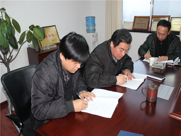 會后,為充分體現框架式管理模式,同時便于年終考核,獎優(yōu)罰劣,總經理趙明海與各負責人簽訂了2014年度目標責任書。為強化落實安全工作,主管安全工作的副總魏述剛與各負責人簽訂了2014年安全生產管理目標責任書。